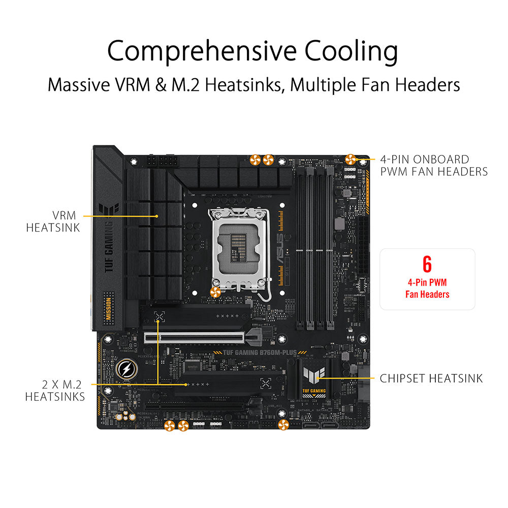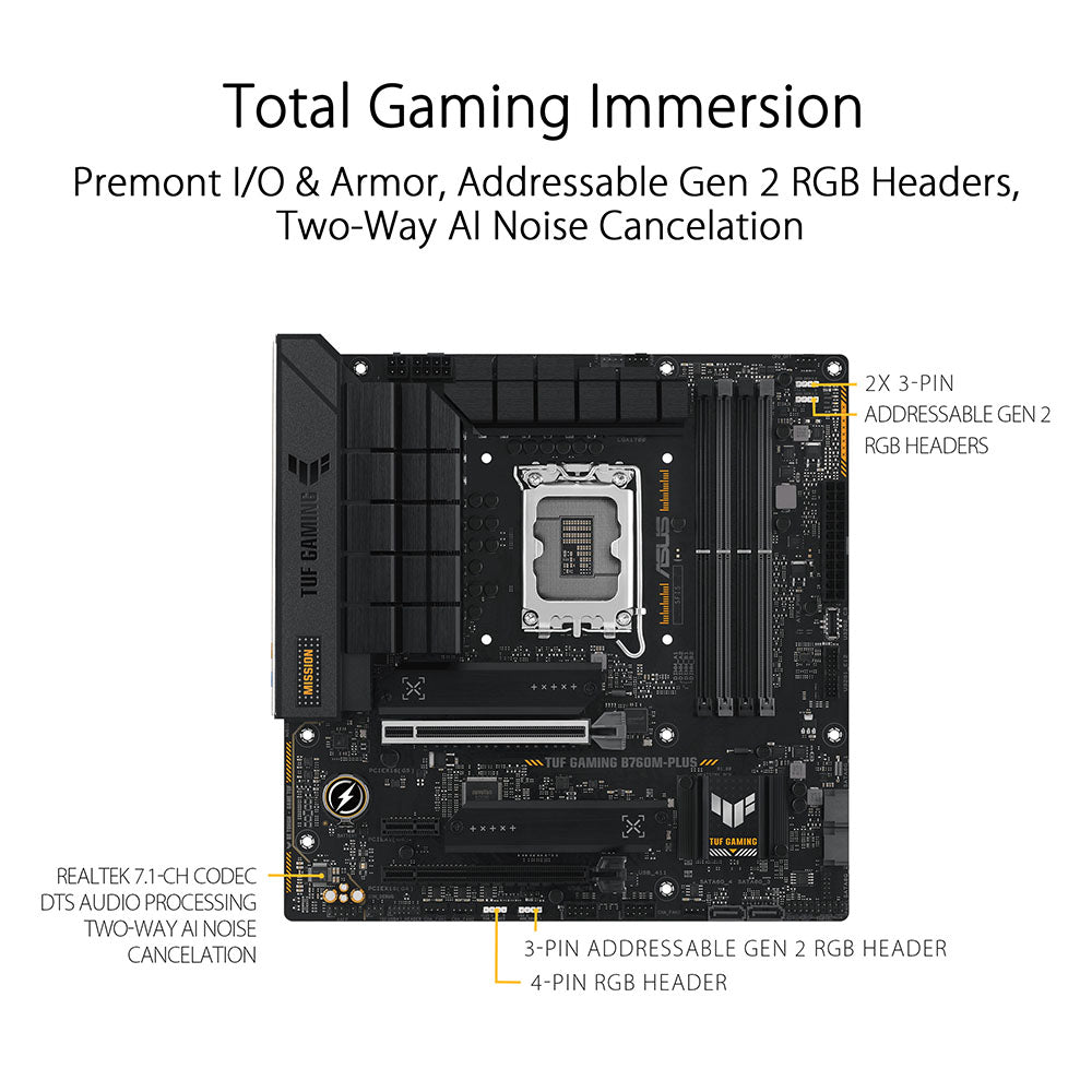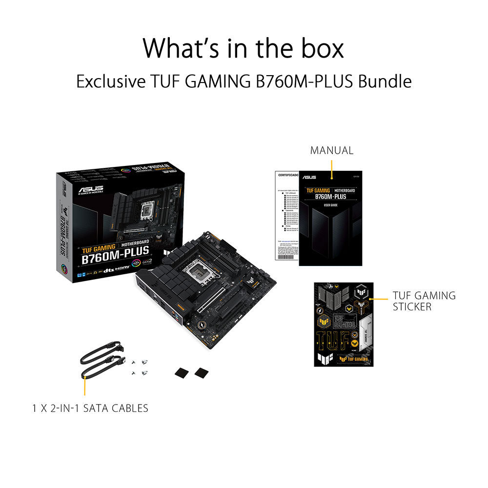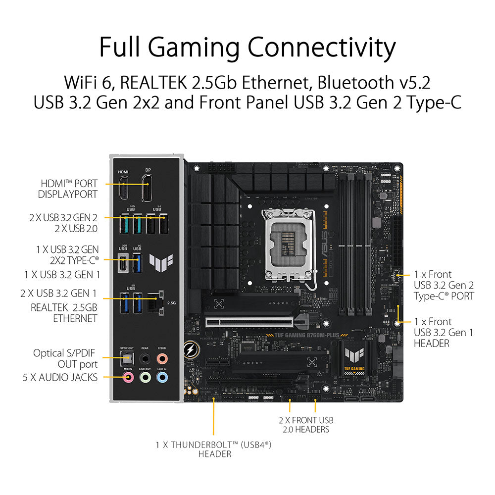 • The ASUS TUF Gaming B760M-PLUS ATX motherboard is designed to support latest Intel Socket LGA 1700 for 13th Gen and 12th Gen Intel Core processors, Pentium Gold and Celeron Processors.