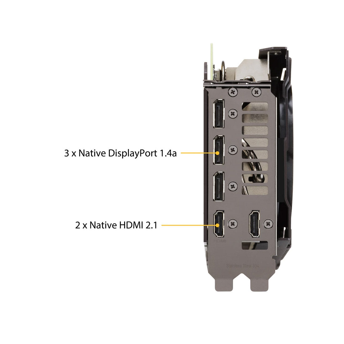 A new addressable RGB element can be customized with Armoury Crate to create a uniform look along with other ROG components. To fulfill the power demands of the GeForce RTX 3080, two 8-pin power connectors are present, along with an onboard circuit that monitors PSU rail voltage.