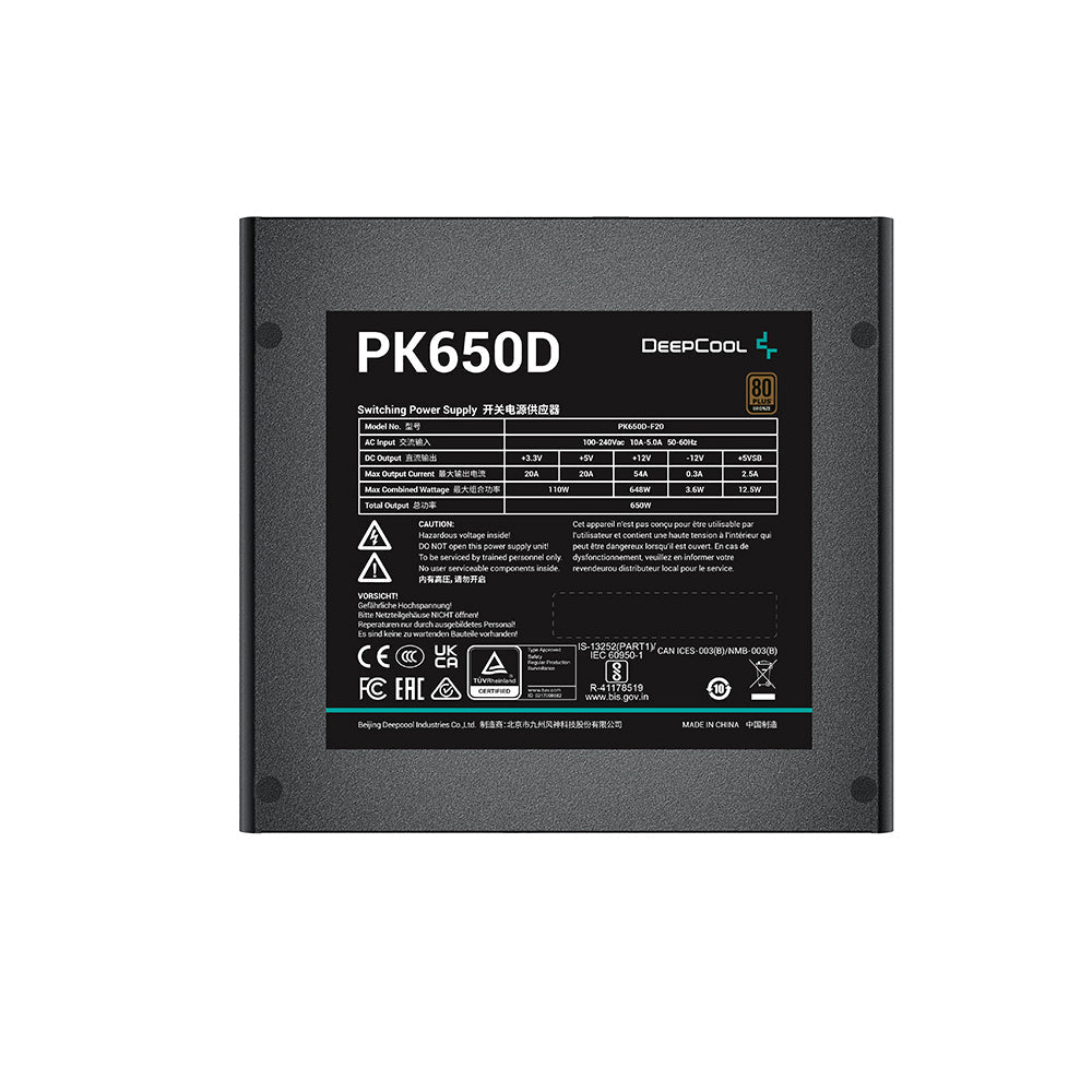 DEEPCOOL PK650D 650W Non-Modular 80 Plus Bronze SMPS Power Supply - From tpstech.in
