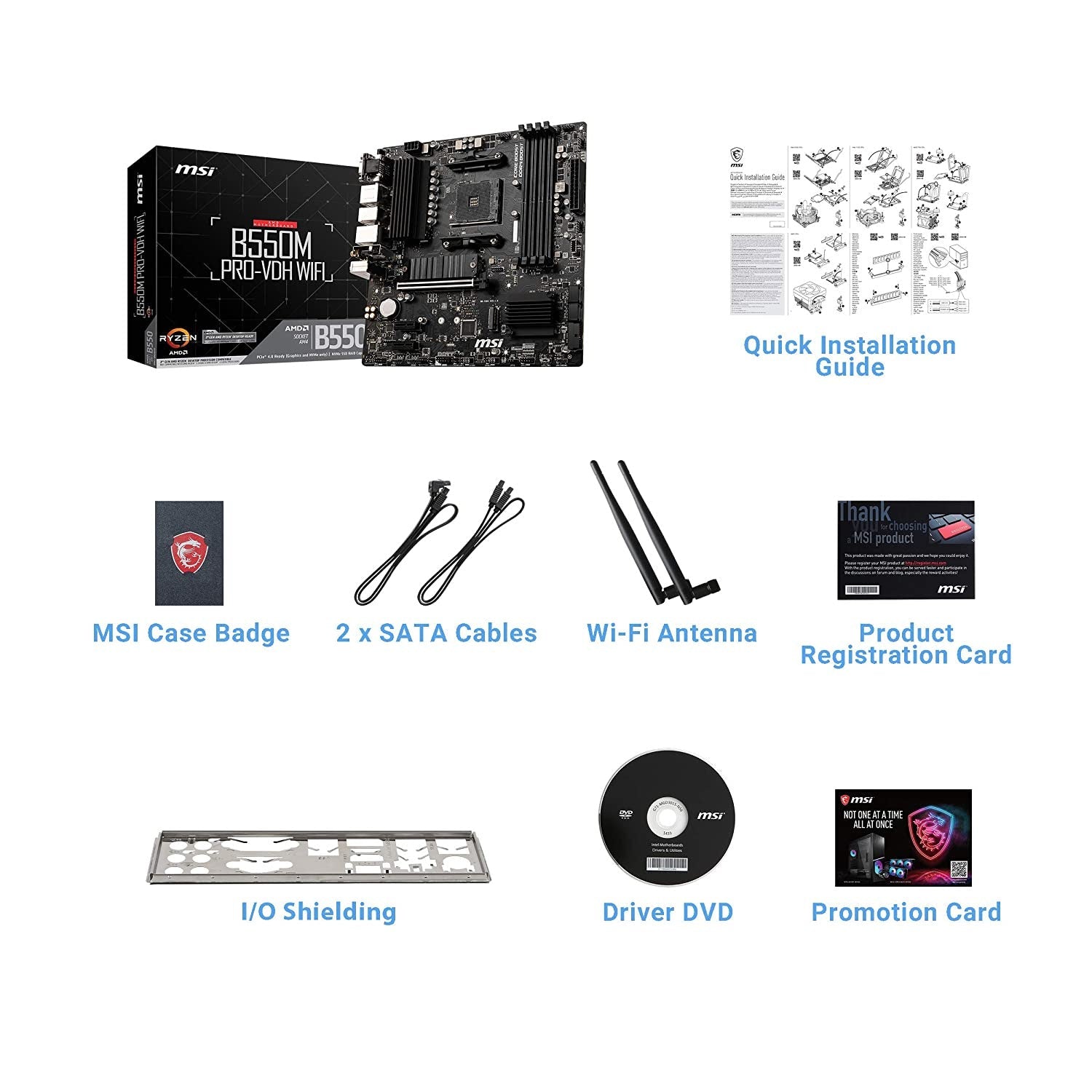 • MSI B550M Pro-VDH WiFi motherboard supports Supports AM4 socket 3rd Gen AMD Ryzen processors and future AMD Ryzen processors with BIOS update. Combining MSI Core Boost, you can release maximum performance no matter what CPU you use. MSI PRO series motherboards are designed to satisfy any professional workflow.